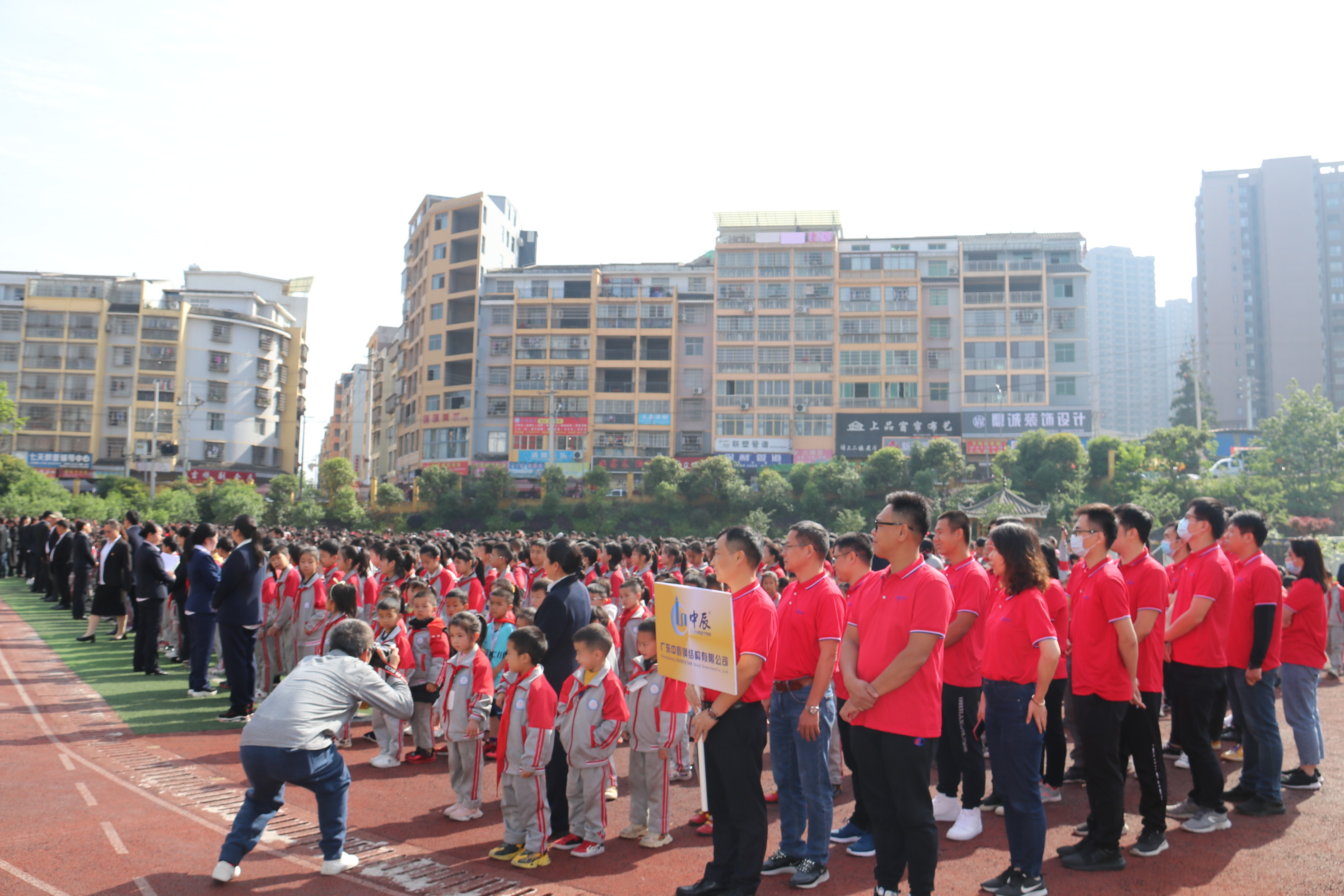 中辰国际集团中辰钢构有限公司董事长龚武、总工程师程容琴、副总经理殷晓辉、总经理助理黄飞旺、总经理办副主任、董事长秘邹金凤、贵州中鑫丝路文化传播有限公司总经理郭勇和中共黎平县委常委、县委统战部长李仁穷、县委统战部副部长、县工商联党组书记吴义理、贵州通建建设工程有限公司董事长、黎平居然之家董事长周祖祥、贵州通建建设工程有限公司法定代表人、总经理李祖培、黎平居然之家副董事长蒋佑君以及黎平县城关第七小学全校师生等参与本次捐赠仪式。