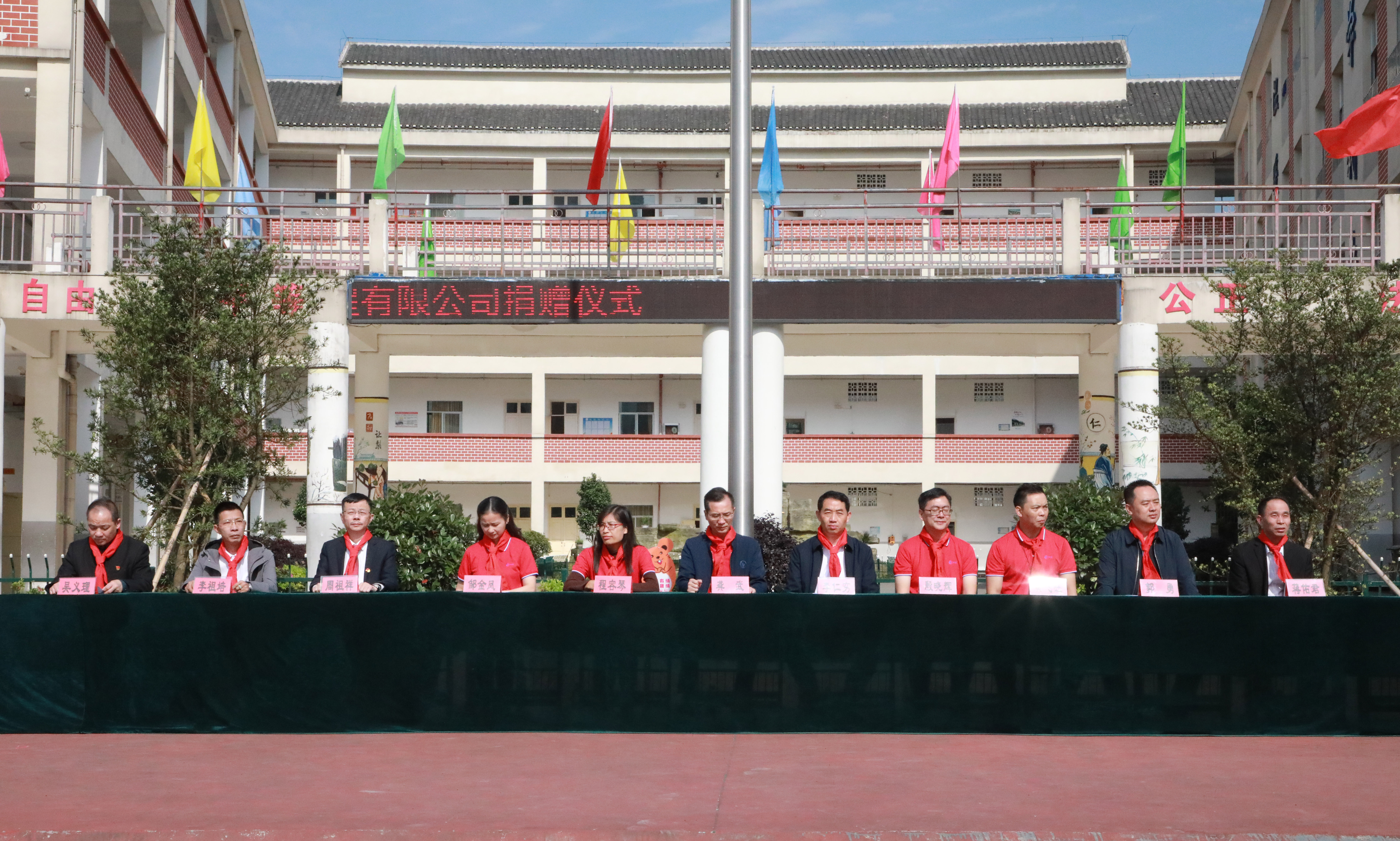 捐赠仪式上,首先由黎平县城关第七小学学生代表为主席台上的领导和嘉宾敬献并佩戴红领巾。